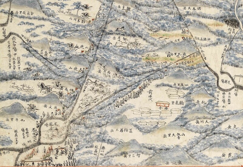 ▲ 탐라순력도 '산장구마'의 일부분 (제주=연합뉴스) 조선 숙종 1702년(숙종28) 제주 목사로 부임한 이형상이 화공 김남길에게 남기도록 한 채색 화첩 '탐라순력도' 중 산장구마의 일부분.이 그림은 같은해 10월 15일 한라산 중턱에 설치된 목마장에서 말을 몰아 일정한 장소에 모으고 그 수를 확인하는 모습이다. 2024.5.12 [제주도 제공, 재판매 및 DB 금지] |