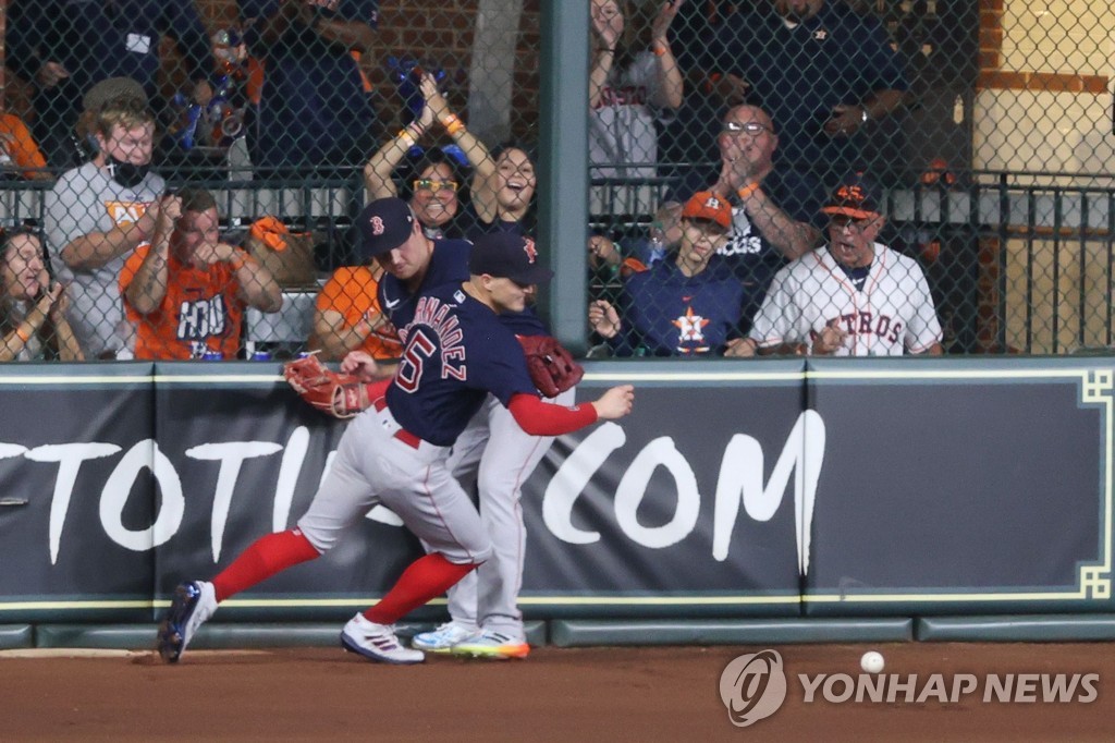 | ▲ 휴스턴 알바레스의 타구를 놓친 보스턴 중견수 에르난데스 [게티이미지/AFP=연합뉴스] |