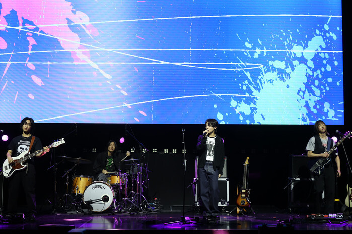 South Korean rock band Dragon Pony performs during a showcase to promote the group's debut album "POP-UP" in Seoul on Sept. 26, 2024. (Yonhap)