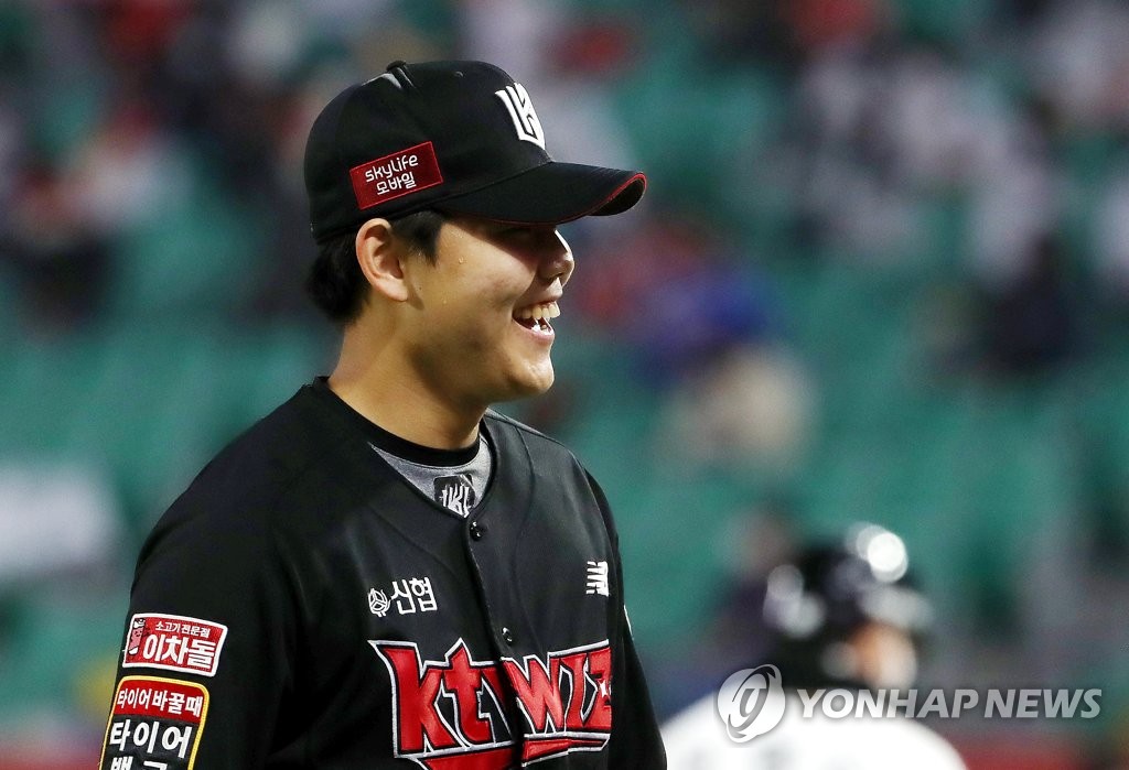 | ▲ In this file photo from Oct. 30, 2021, KT Wiz starter So Hyeong-jun smiles after completing the bottom of the fifth inning of a Korea Baseball Organization regular season game against the SSG Landers at Incheon SSG Landers Field in Incheon, 40 kilometers west of Seoul. (Yonhap) |