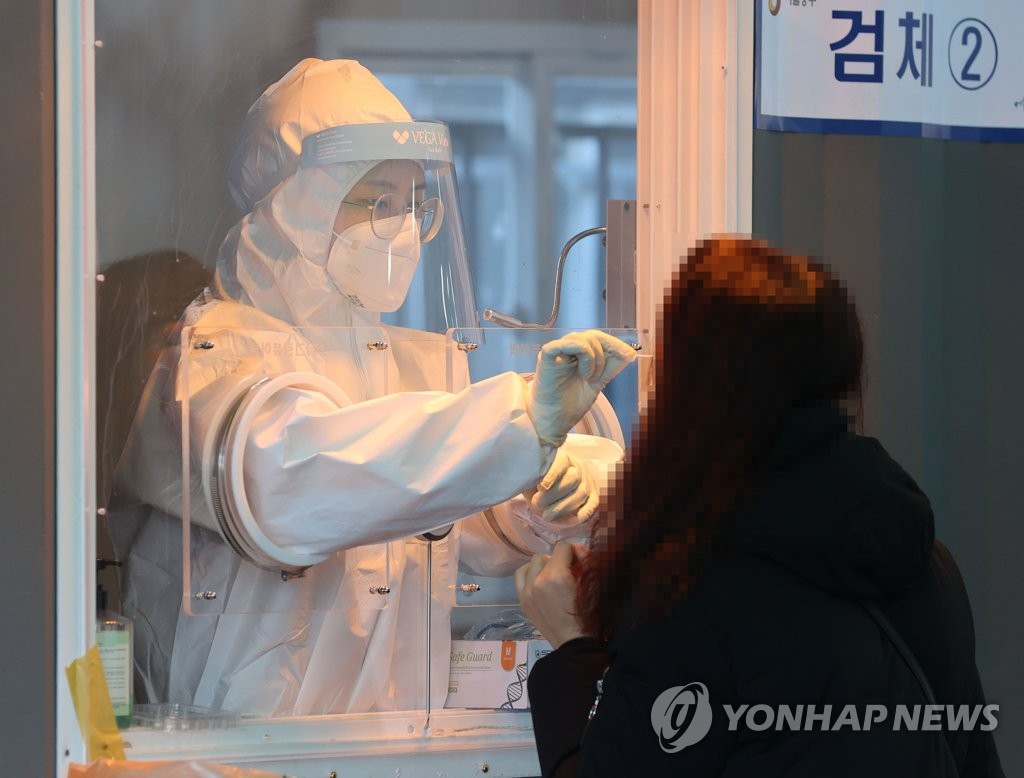| ▲ A health worker collects a sample from a citizen at a makeshift virus testing clinic in Seoul on Jan. 19, 2021. (Yonhap) |