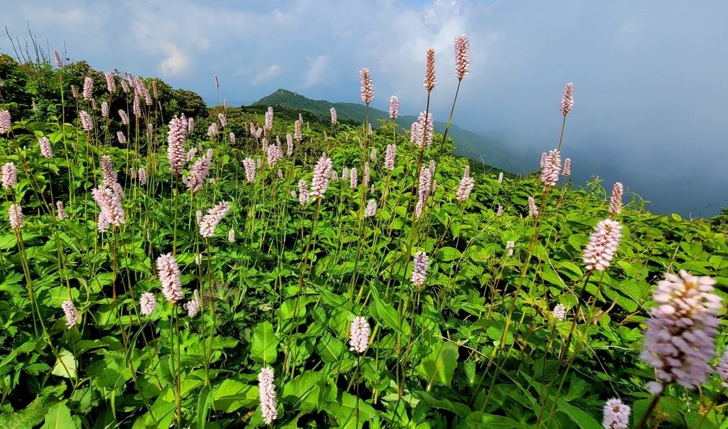 (단양=연합뉴스) 소백산국립공원 비로봉∼국망봉 구간에 여름꽃 범꼬리가 만개했다.