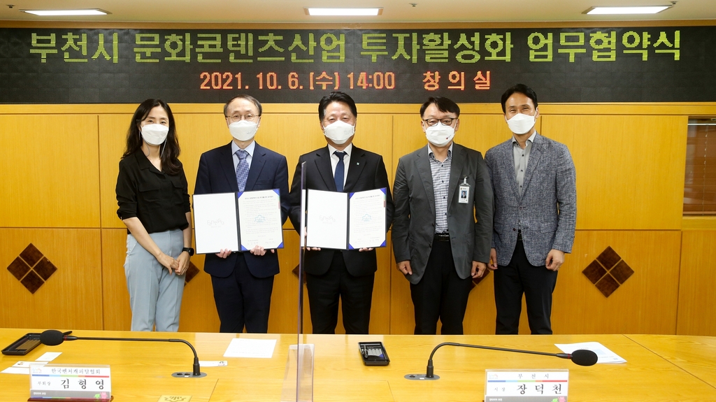 (부천=연합뉴스) 경기도 부천시는 한국벤처캐피탈협회와 '부천시 문화콘텐츠산업 투자 활성화를 위한 업무협약'을 체결했다고 7일 밝혔다.