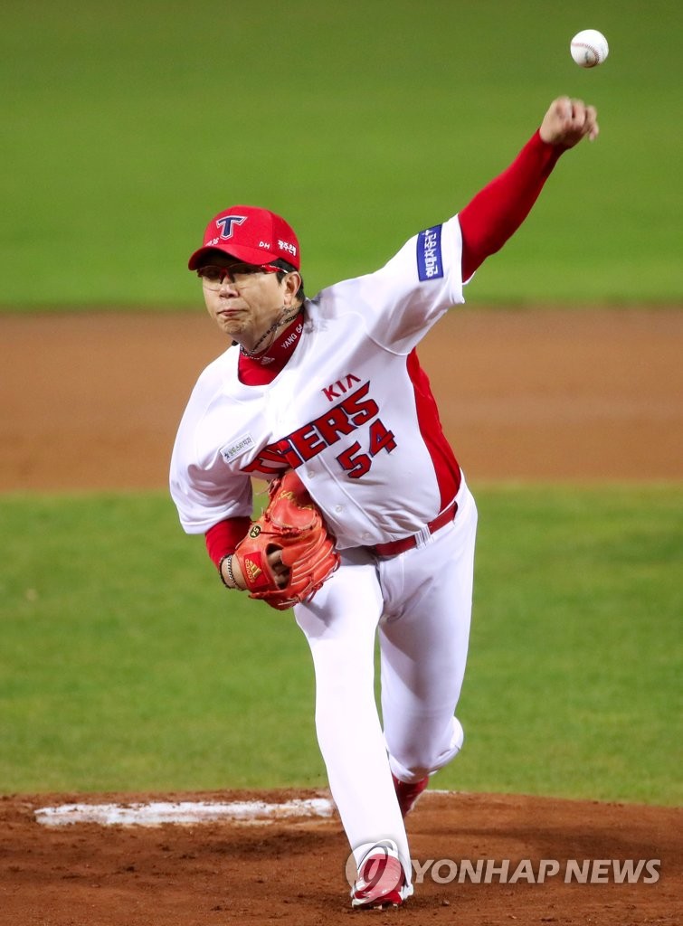 ▲ In this file photo from Oct. 13, 2020, Yang Hyeon-jong of the Kia Tigers pitches against the NC Dinos in the bottom of the fifth inning of a Korea Baseball Organization regular season game at Changwon NC Park in Changwon, 400 kilometers southeast of Seoul. (Yonhap)