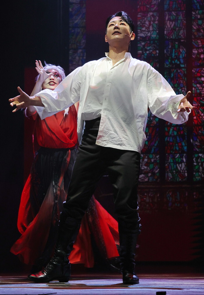 South Korean actor Tei, who stars in the musical "Bloody Love," performs during a publicity event in Seoul on Dec. 12, 2024. The musical runs from Dec. 7 to Feb. 16. (Yonhap)