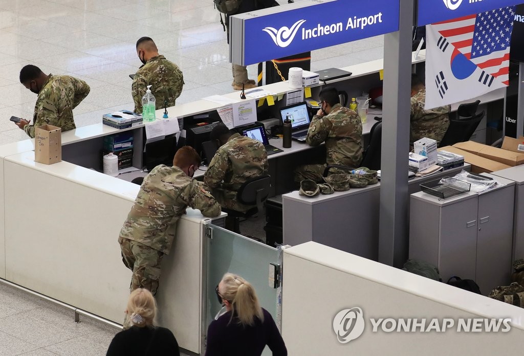 | ▲ This photo, taken on Jan. 22, 2021, shows U.S. military personnel at Incheon airport, west of Seoul. (Yonhap) |