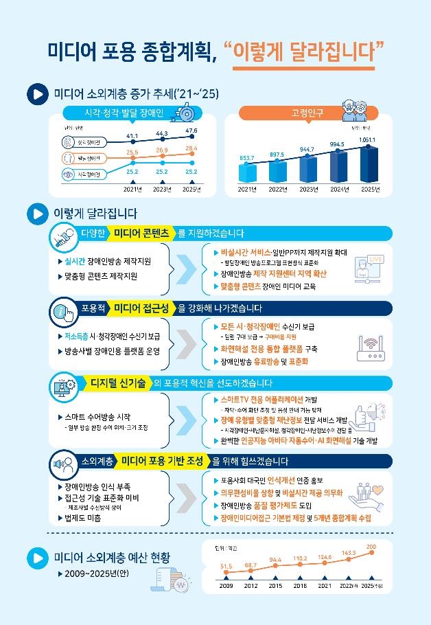 방송통신위원회(방통위)는 이런 내용을 포함한 '미디어 포용 종합계획'을 추진한다고 12일 국무회의에서 보고했다.