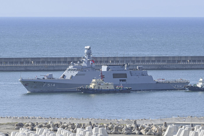 The 2,400-ton Turkish frigate TCG Kinaliada enters the South Korean naval base in the southeastern port city of Busan on June 4, 2024, for a friendship visit, in this photo provided by the Commander Republic of Korea Fleet. (PHOTO NOT FOR SALE) (Yonhap)