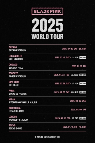 블랙핑크는 앞서 7월 5∼6일 고양종합운동장 주경기장을 시작으로 12일 미국 로스앤젤레스, 18일 미국 시카고, 22일 캐나다 토론토, 26일 미국 뉴욕, 8월 2일 프랑스 파리, 6일 이탈리아 밀라노, 9일 스페인 바르셀로나, 15일 영국 런던, 내년 1월 16∼18일 일본 도쿄를 찾는 투어 계획을 발표한 바 있다.