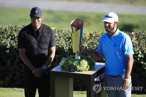 | ▲ 타이거 우즈(왼쪽)와 시상식에 함께 선 호마. [AFP/게티이미지=연합뉴스] |