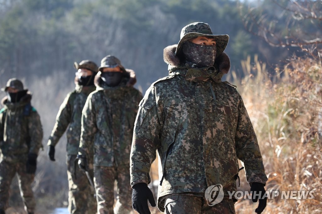 | ▲ Military officials search for remains of wild boars in Yangyang, 215 kilometers east of Seoul, on Jan. 8, 2021, in this photo provided by the Army. (PHOTO NOT FOR SALE) (Yonhap) |