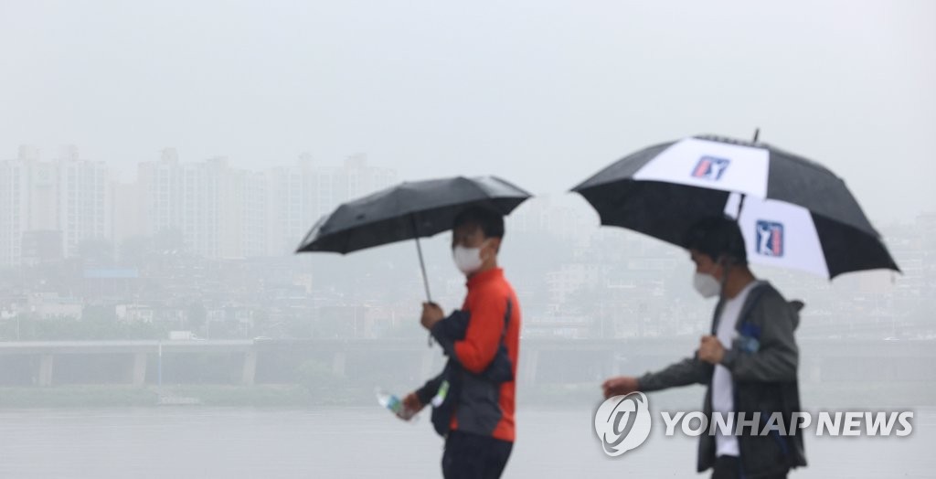 | ▲ 비 내리는 한강 (서울=연합뉴스) 류영석 기자 = 중부지방에 비가 내리는 16일 오전 서울 반포한강공원에서 시민들이 우산을 쓴 채 걸어가고 있다. 2021.5.16 ondol@yna.co.kr |