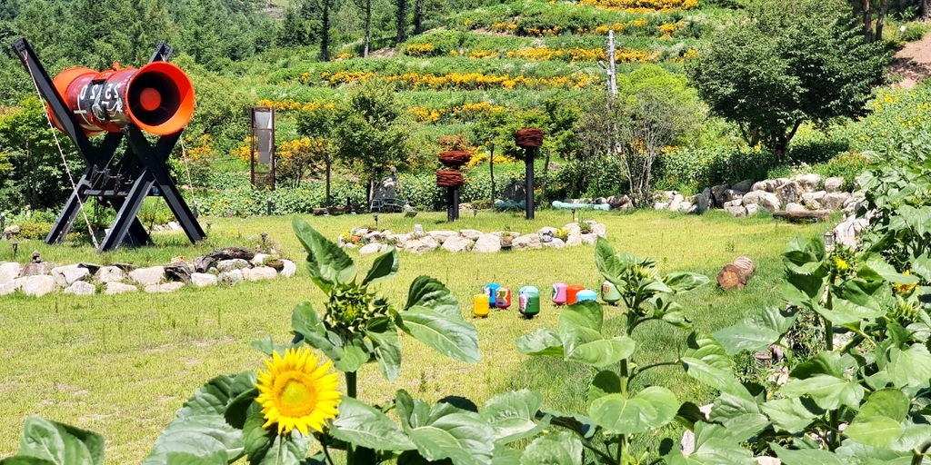 (태백=연합뉴스) 배연호 기자 = 올여름에도 강원 태백시 구와우에는 어김없이 해바라기가 노란 꽃망울을 터트리기 시작했다.