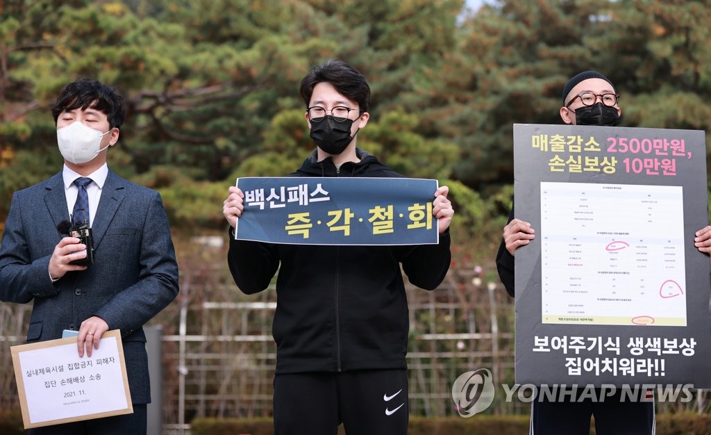 SEOUL, Nov. 4 (Yonhap) -- Hundreds of gym operators collectively sued the government for damages Thursday, claiming anti-COVID-19 business restrictions caused heavy losses to private indoor sports facilities and violated their rights to property and equality.