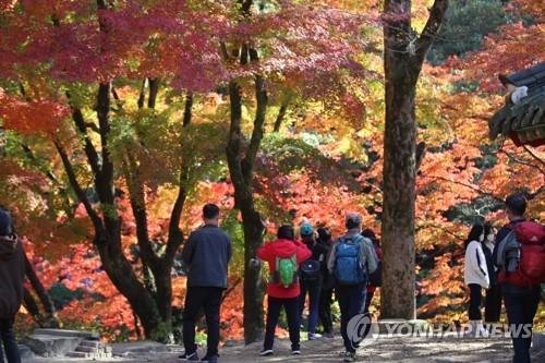 계룡산국립공원사무소 관계자는 "단풍이 다음 주 절정인데, 산행을 즐기려는 등산객들이 부쩍 많아졌다"고 말했다.