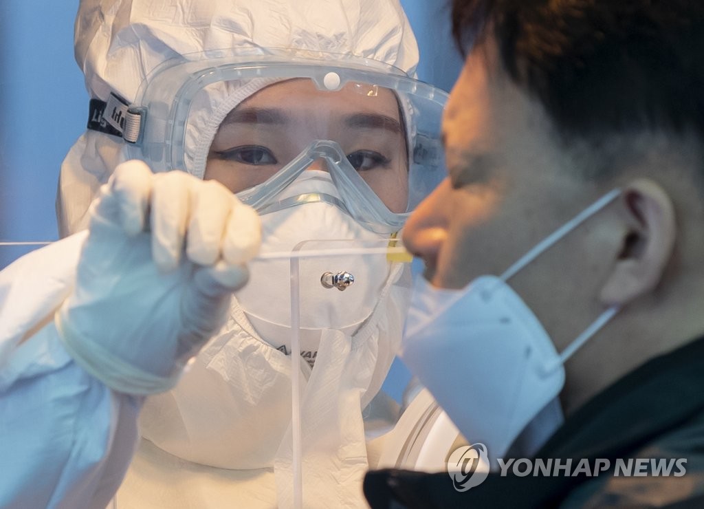 | ▲ A health worker clad in a protective suit collects a sample from a citizen at a makeshift virus testing clinic in Seoul on Jan. 22, 2021. (Yonhap) |
