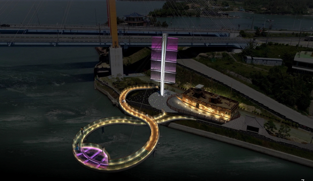 총 길이 110m의 울돌목 스카이워크는 회오리 바다, 울돌목의 거센 물살위를 직접 걸어볼 수 있는 장소로 강강술래 등을 모티브로 해 둥근 모양으로 조성된다.