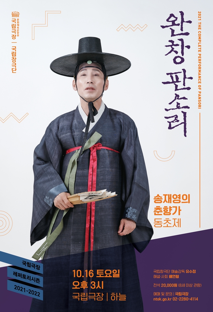 국립극장은 판소리 발표회와 연기·연출 등 여러 방면에서 대중과 활발하게 소통하는 송 명창이 5시간에 이르는 동초제 '춘향가'를 완창한다고 23일 밝혔다.