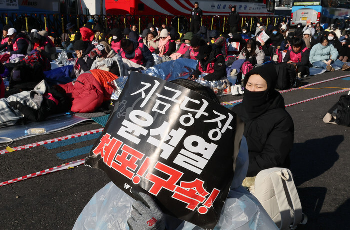 Members of progressive civic groups hold a rally in support of the impeachment of President Yoon Suk Yeol near his residence in central Seoul on Jan. 4, 2025. (Yonhap)