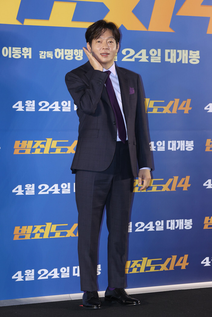 South Korean actor Park Ji-hwan, who stars in the new movie "The Roundup: Punishment," poses for a photo during a publicity event in Seoul on April 15, 2024. The fourth installment of the box office hit "The Outlaws" is set to be released on April 24. (Yonhap)