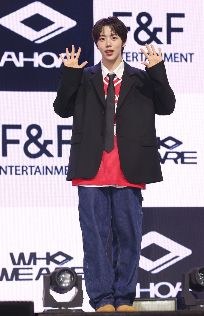Cha Woong-ki, a member of South Korean boy group AHOF, poses for a photo during a showcase for the group's first mini album "Who We Are" in Seoul on July 1, 2025. (Yonhap)