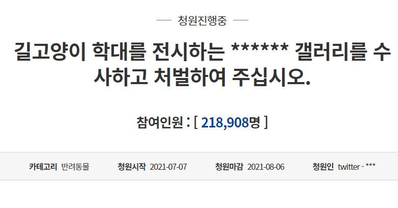 | ▲ 길고양이 학대 전시 수사 촉구 청원 글 [청와대 게시판 화면 캡처] |