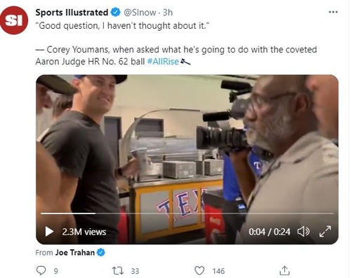저지의 역사적인 홈런공을 잡은 팬은 댈러스에 사는 코리 유먼스였다.