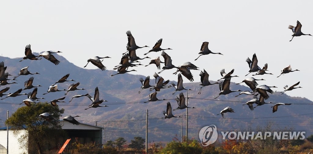 (철원=연합뉴스) 양지웅 기자 = 겨울 진객인 재두루미가 올해도 어김없이 강원 철원평야를 찾았다.