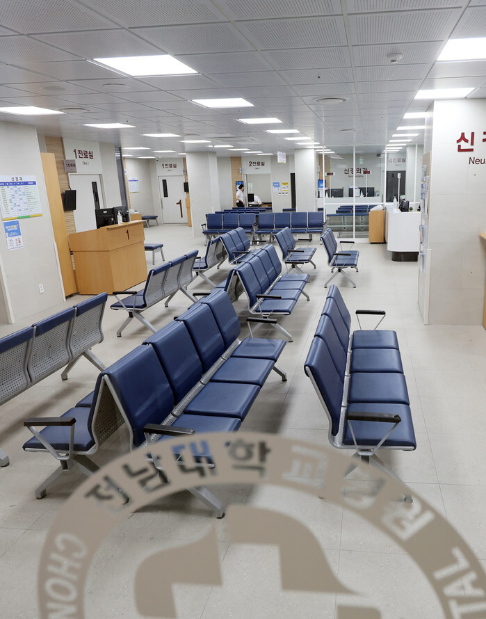 Seats for waiting patients remain vacant at Chonnam National University Hospital in Gwangju, 267 kilometers south of Seoul, on June 18, 2024, as community doctors belonging to the Korean Medical Association entered a nationwide one-day walkout earlier in the day, protesting a hike in medical student enrollment. (Yonhap)