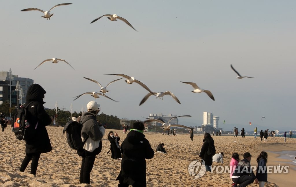 | ▲ 봄날 같은 동해안 (강릉=연합뉴스) 이해용 기자 = 봄날 같은 날씨를 보인 25일 강원 강릉시의 한 해변이 관광객들로 북적이고 있다. 2021.1.25 dmz@yna.co.kr |