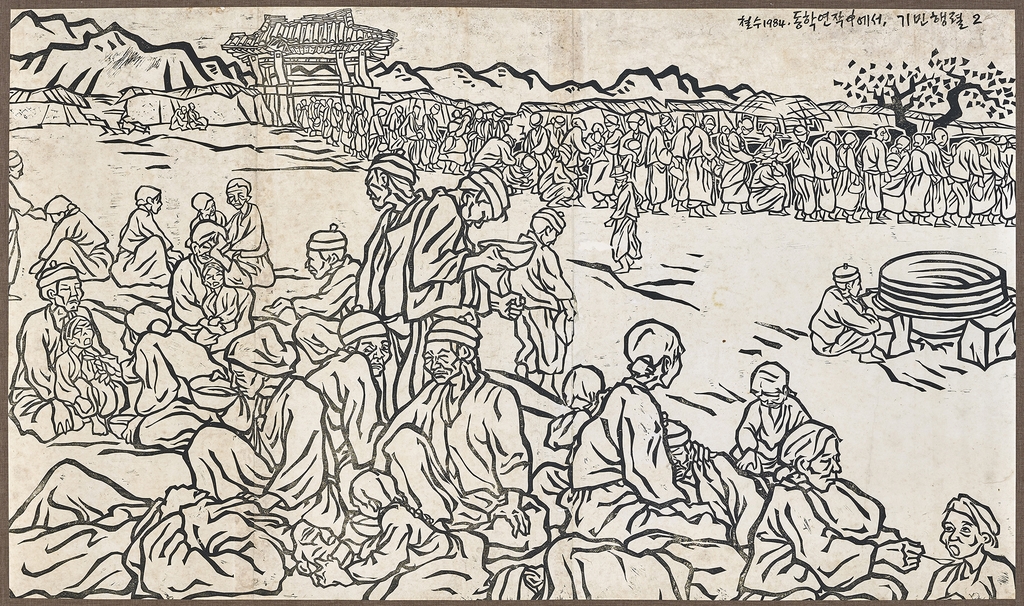 한국 민중판화로는 이철수가 동학을 주제로 제작한 '기민행렬 2', 김준권이 전봉준을 중심에 배치한 '새야 새야', 홍성담의 '대동세상'과 '북춤', 오윤 작품인 '춘무인추무의'(春無仁秋無義) 등이 나온다.