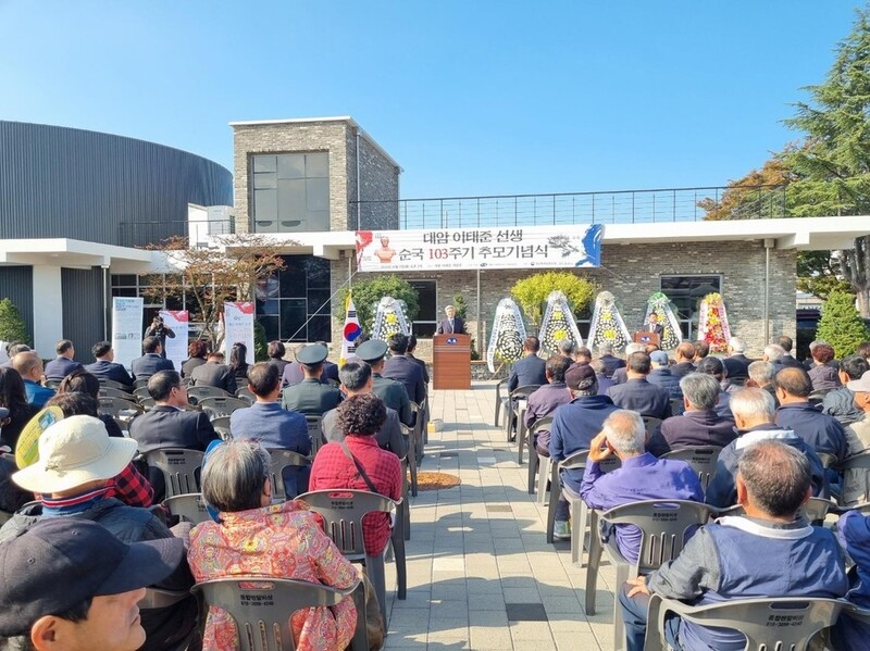 | ▲ 대암 이태준 선생 순국 101주기 추념식 2022년 11월 18일 함안군 군북면 대암이태준기념관에서 열린 대암 순국 101주기 추념식. [함안군 제공. 재판매 및 DB 금지] |