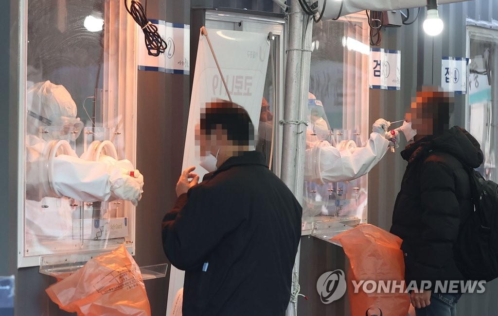 ▲ This photo taken on Feb. 3, 2021, shows people receiving a coronavirus test at a medical facility at Seoul Station in central Seoul. (Yonhap)