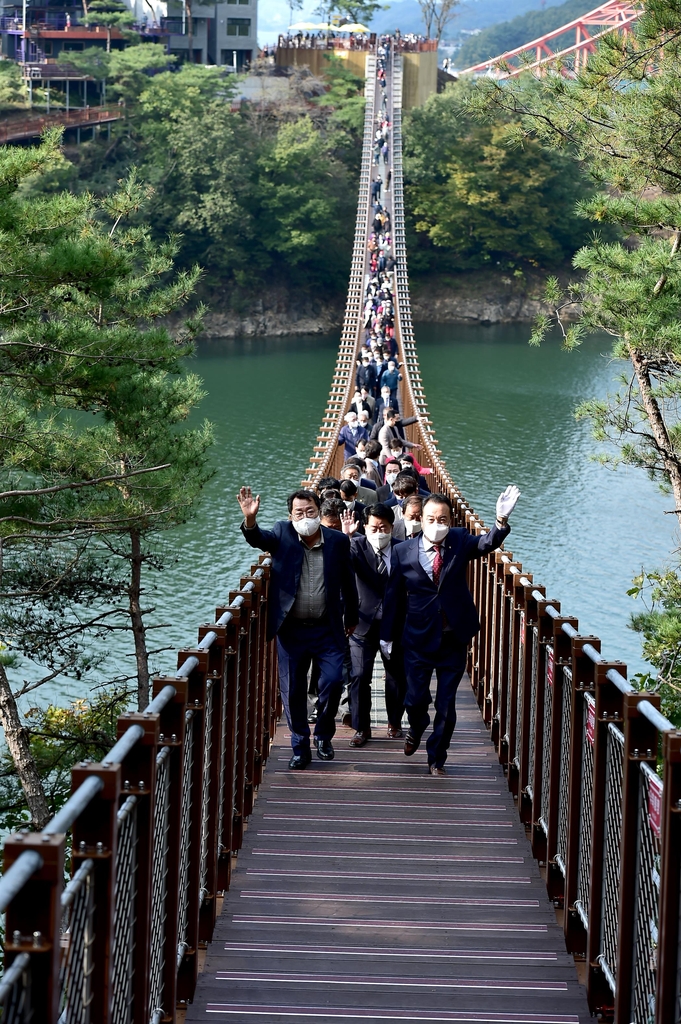 충북 제천시는 22일 오후 이상천 시장과 배동만 시의회 의장, 엄태영 국회의원 등 50여명이 참석한 가운데 옥순봉 출렁다리 개통식을 가졌다.