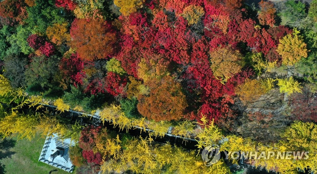 (전국종합=연합뉴스) 가을 단풍이 절정에 이른 30일 흐린 날씨 속에서도 곱게 물든 단풍을 즐기려는 나들이객들의 발걸음이 전국 곳곳에서 이어졌다.