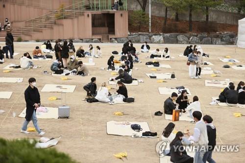 | ▲ Students at Seoul's Sungkyunkwan University enjoy a spring festival on March 23, 2022, while maintaining social distancing. (Yonhap) |