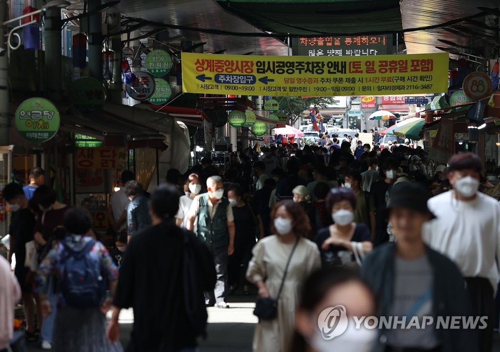 ▲ 추석 앞두고 붐비는 재래시장 (서울=연합뉴스) 이지은 기자 = 추석 연휴인 19일 오후 서울 노원구 상계중앙시장에서 시민들이 제수품 등을 사기 위해 시장을 둘러보고 있다. 2021.9.19 jieunlee@yna.co.kr