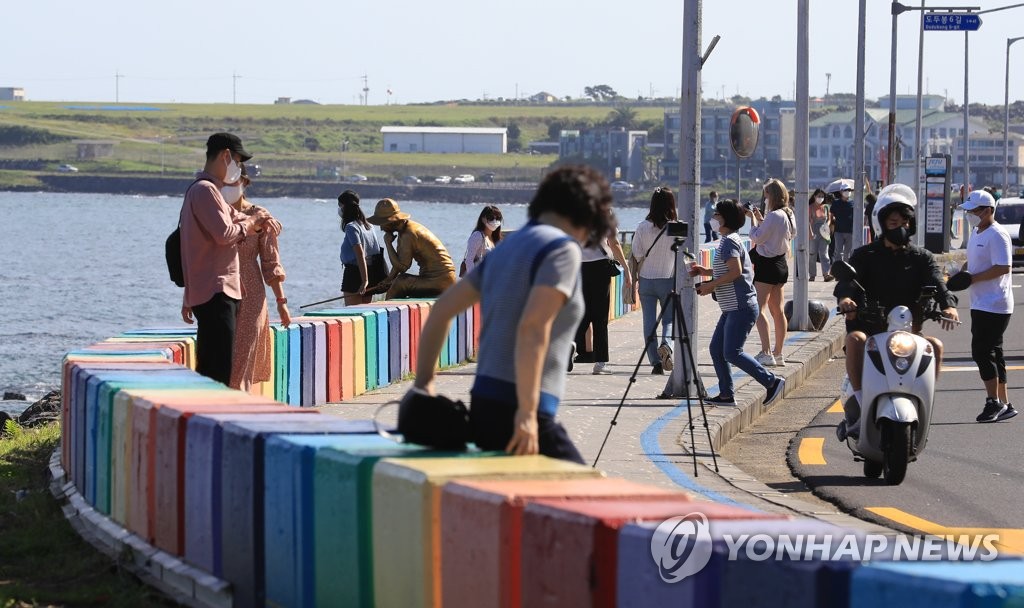 ▲ 추석 연휴 붐비는 제주 관광지 (제주=연합뉴스) 박지호 기자 = 추석을 하루 앞둔 20일 오전 제주시 도두동 해안도로가 관광객들로 붐비고 있다. 2021.9.20 jihopark@yna.co.kr
