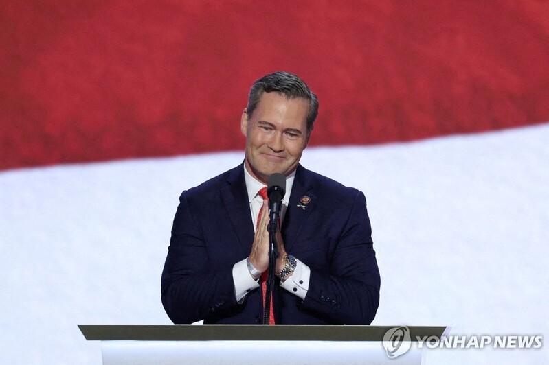 | ▲ This file photo, released by Reuters, shows Rep. Michael Waltz (FL) gesturing on Day 3 of the Republican National Convention at the Fiserv Forum in Milwaukee, Wisconsin on July 17, 2024. (Yonhap) |