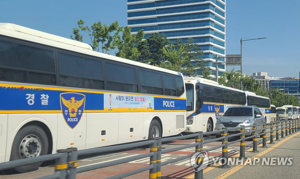 | ▲ Police buses barricade an area near the National Health Insurance in Wonju, about 140 kilometers east of Seoul, on July 23, 2021, as the Korean Confederation of Trade Unions said it will stage a rally despite repeated government warnings amid the fourth wave of the coronavirus pandemic. (Yonhap) |