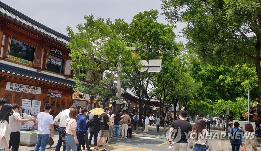 | ▲ 인파로 붐비는 전주 한옥마을 (전주=연합뉴스) 김동철 기자 = 23일 전북 전주 한옥마을이 행락객들로 붐비고 있다. 2021.5.23 sollenso@yna.co.kr |