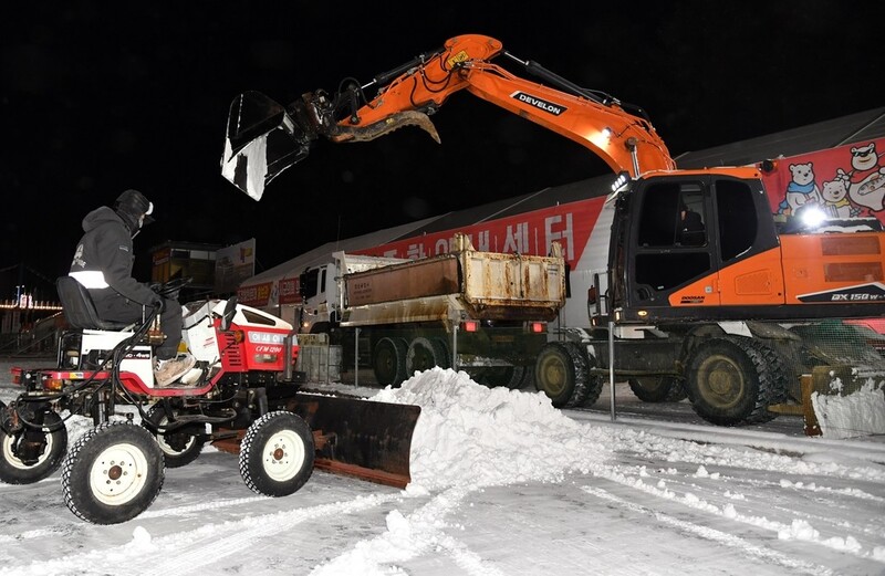| ▲ 화천산천어축제 개막 첫날 야간 제설작업 [화천군 제공.재판매 및 DB 금지] |