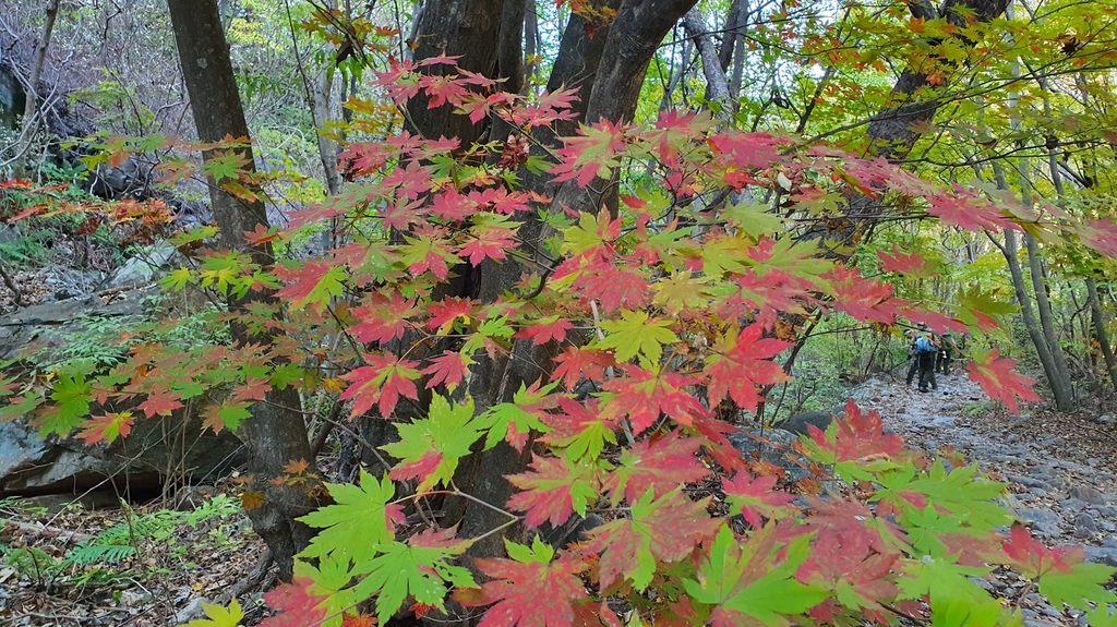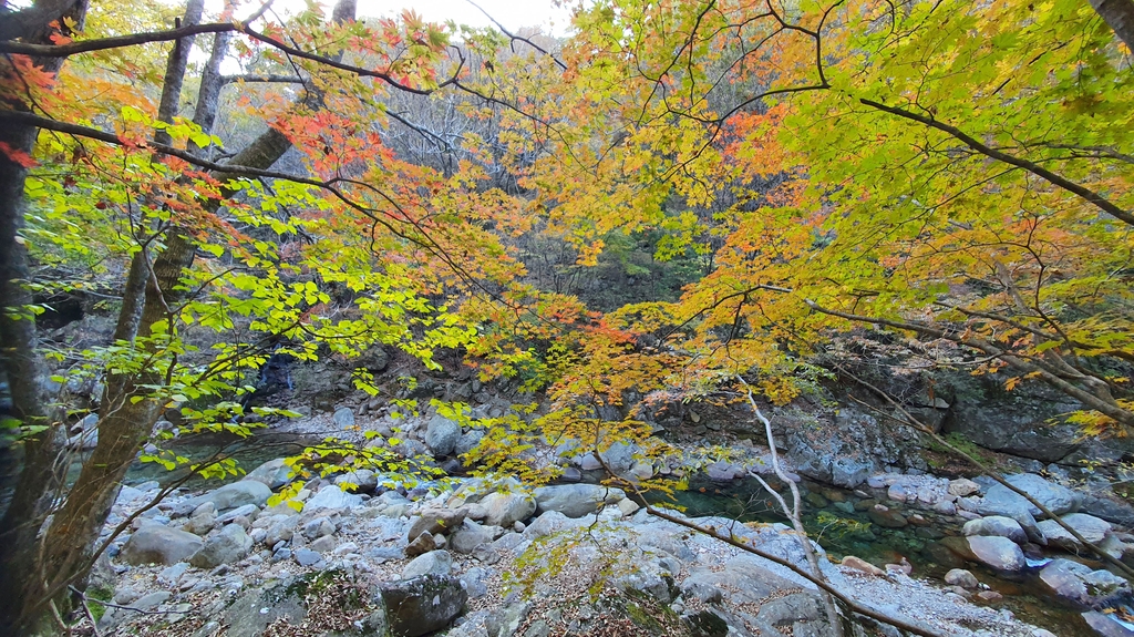 (남원=연합뉴스) 전북 남원시 산내면의 지리산 뱀사골에 단풍이 물들며 등산객을 유혹하고 있다.