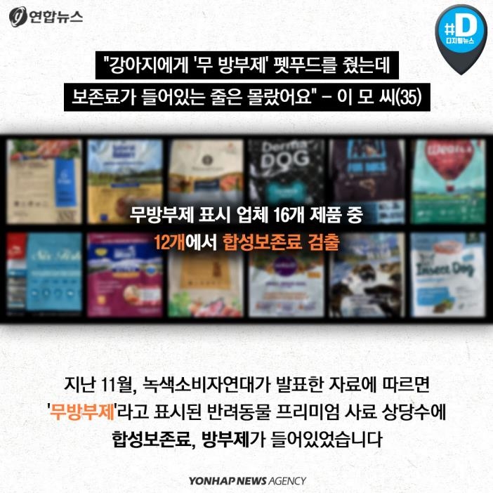 "강아지에게 '무방부제' 펫푸드를 줬는데 보존료가 들어있는 줄은 몰랐어요" - 이모 씨(35)