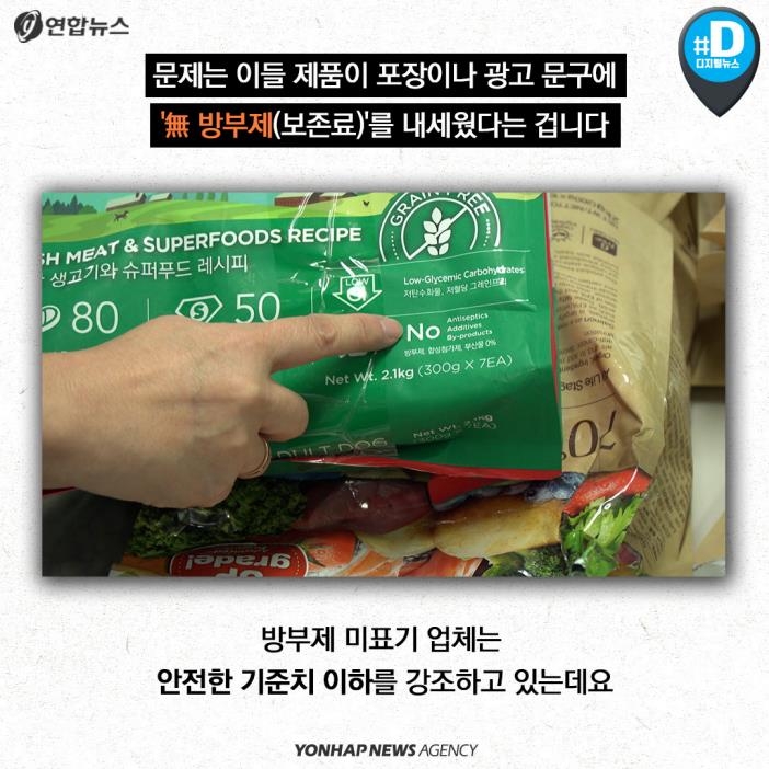 지난해 11월, 녹색소비자연대가 발표한 자료에 따르면 '무방부제'라고 표시된 반려동물 프리미엄 사료 상당수에 합성보존료, 방부제가 들어있었습니다.