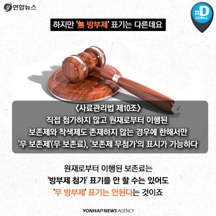 원재로부터 이행된 보존료는 '방부제 첨가' 표기를 안 할 수는 있어도 '무방부제' 표기는 안 된다는 것이죠.