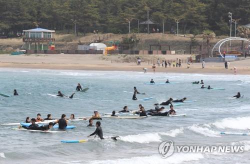 제주 바닷가와 동해안에는 벌써 여름이라도 온 것처럼 서핑하는 이들이 눈에 띄었다.