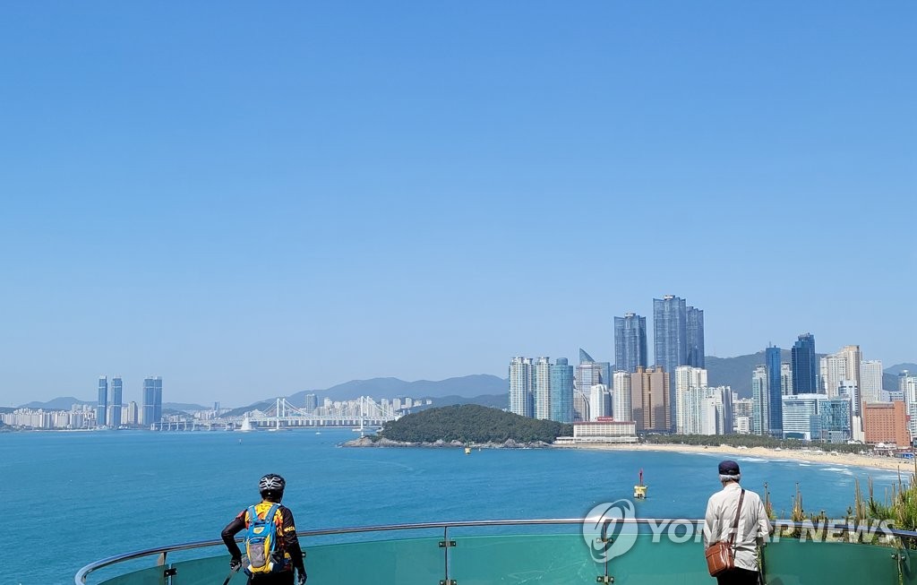 | ▲ 화창한 부산 (부산=연합뉴스) 조정호 기자 = 일요일인 9일 부산 해운대구 달맞이 언덕에서 시민들이 바다를 감상하고 있다. 전날 기승을 부린 황사가 물러가고 맑은 날씨를 보였다. 2021.5.9 ccho@yna.co.kr |