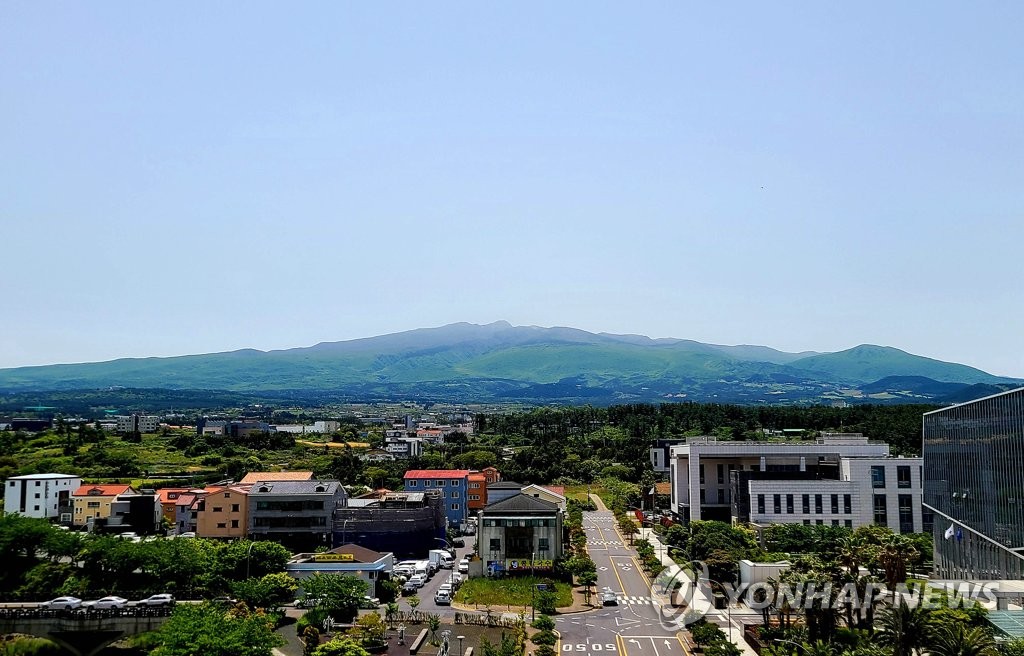 | ▲ 황사 물러간 파란 제주 하늘 (제주=연합뉴스) 변지철 기자 = 고비사막에서 발원한 황사가 물러가며 맑은 날씨를 보인 9일 푸른 하늘과 제주 한라산이 선명하게 드러나며 자태를 뽐내고 있다. 2021.5.9 bjc@yna.co.kr |