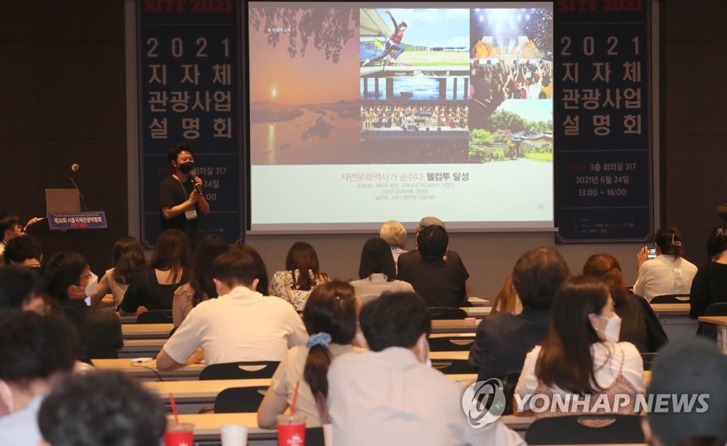 | ▲ 지방자치단체 관광 설명회 (서울=연합뉴스) 도광환 기자 = 24일 코엑스에서 개막한 '2021 서울국제관광박람회'에서 지방자치단체별로 주요 관광지를 소개하는 지방자치단체 관광 설명회가 열리고 있다. 2021.6.24 photo@yna.co.kr |